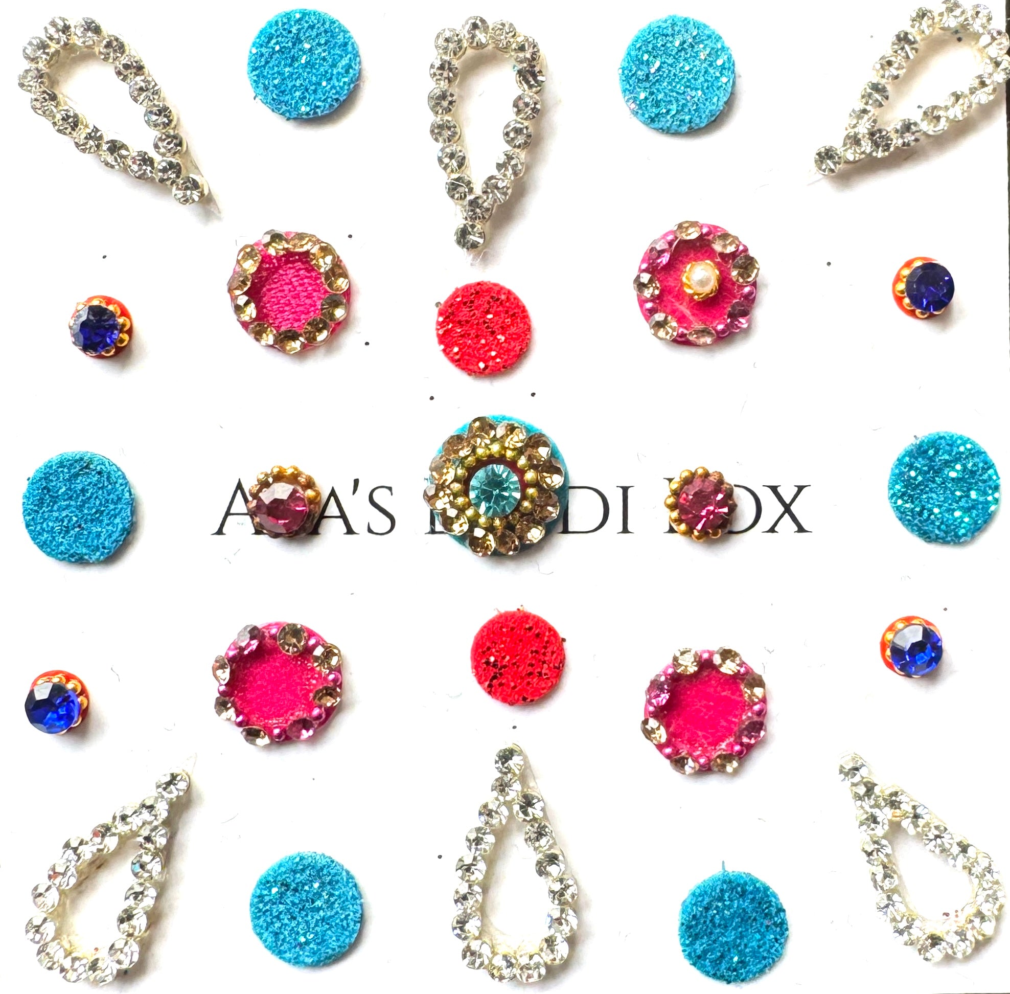 Add a touch of shimmer to your traditional or modern look with our Mixed Bindi Collection. Each bindi is delicately crafted with a sparkling finish. Perfect for your glamorous style