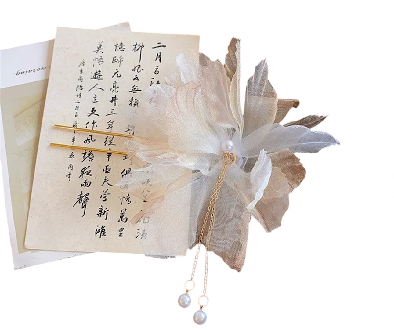 Elevate your hairstyle with this elegant retro hairpin! Featuring a soft coffee-colored chiffon flower and a delicate pearl tassel, it’s perfect for up dos, parties, weddings, or everyday chic looks. Lightweight, stylish, and effortlessly feminine.