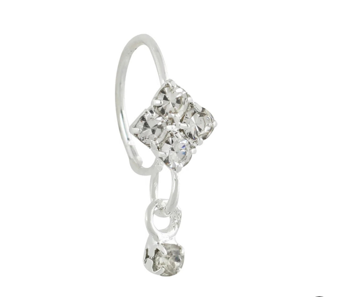 Silver Stone Square Small Gem Dangle Silver nose Ring For a Pierced Nose